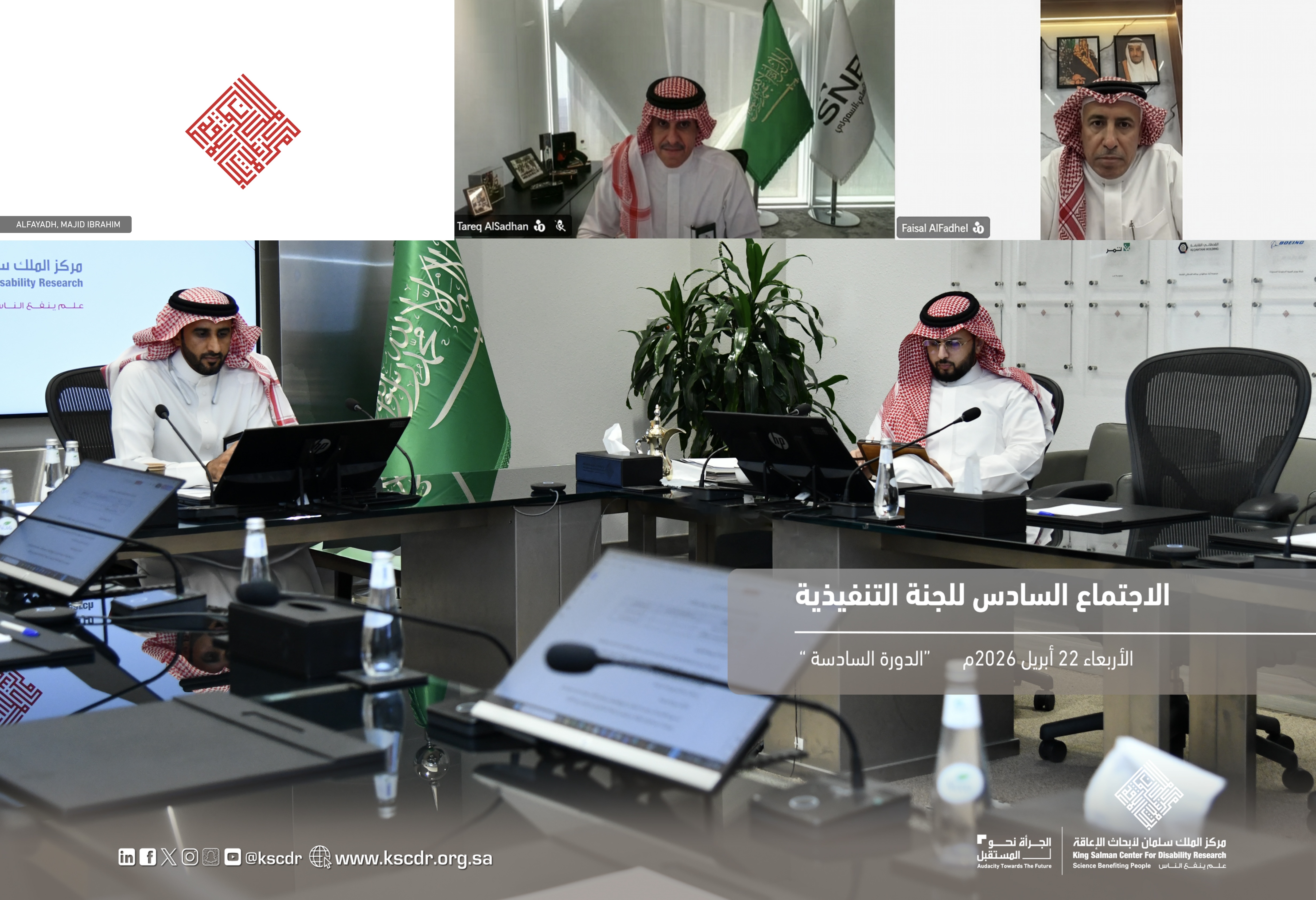 The Executive Committee, in its sixth session, held its sixth meeting under the chairmanship of His Excellency Dr. Majid bin Ibrahim Al-Fayyadh, with the participation of the committee members: Ms. Sara bint Essam bin Abdulqader Al-Muhaidib, Mr. Tareq bin Abdulrahman Al-Sadhan, and Dr. Faisal bin Mansour Al-Fadil.